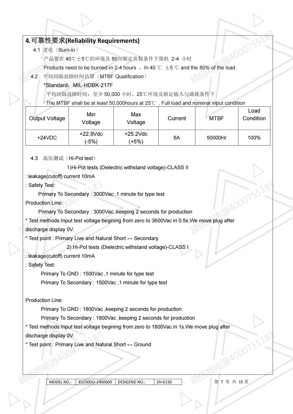 24V6A电源适配器带PFC电路144W(连续输出功率)开关电源的电气性,结构性及环境等要求。